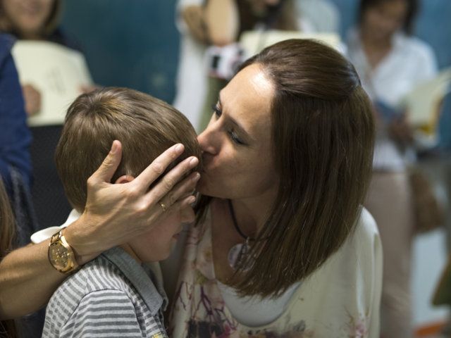 Llegamos al colegio y acompañamos a los niños al salon de actos donde ya estaban todas las familias sentadas esperando poder conocerlos. Caras de ilusión y, porque no decirlo, de buena gente. Una de las organizadoras de la ONG va presentando a los niños a sus respectivas familias de acogida. Vemos como aquellos niños que ya habían estado en acogida años anteriores se abrazan fuertemente con su «familia española», momentos muy emotivos y de gran alegría. Los que venía el primer año se les recibe con los brazos abiertos, notandose algo mas de timidez que no durará mas de 30min.